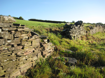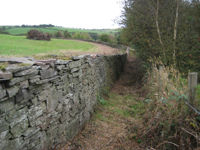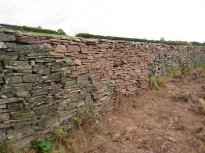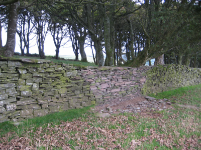 | A section of the wood wall after repair | Same section of wall shown in photo immediately above, after repair | Another view of the bottom wall after repair (what looks likes a large bush in the filed is actually all the wood and undergrowth cleared from the wall before being repaired. It made a VERY large bonfire). |